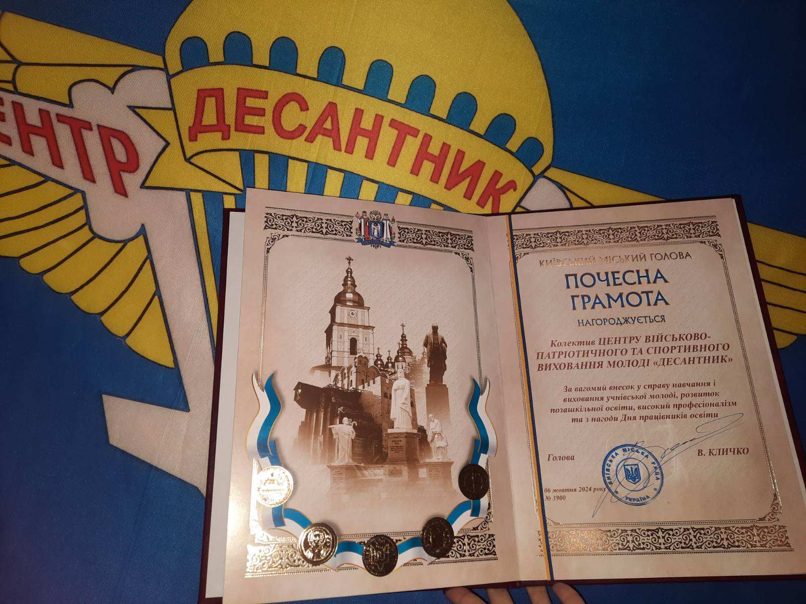 В День столичного позашкілля, який відзначається 20 листопада, Святошинський позашкільний заклад ПНЗ ЦВПСВМ «ДЕСАНТНИК» був нагороджений Почесною грамотою Київського міського голови за вагомий внесок у справу навчання і виховання учнівської молоді, розвиток позашкільної освіти та високий професіоналізм.