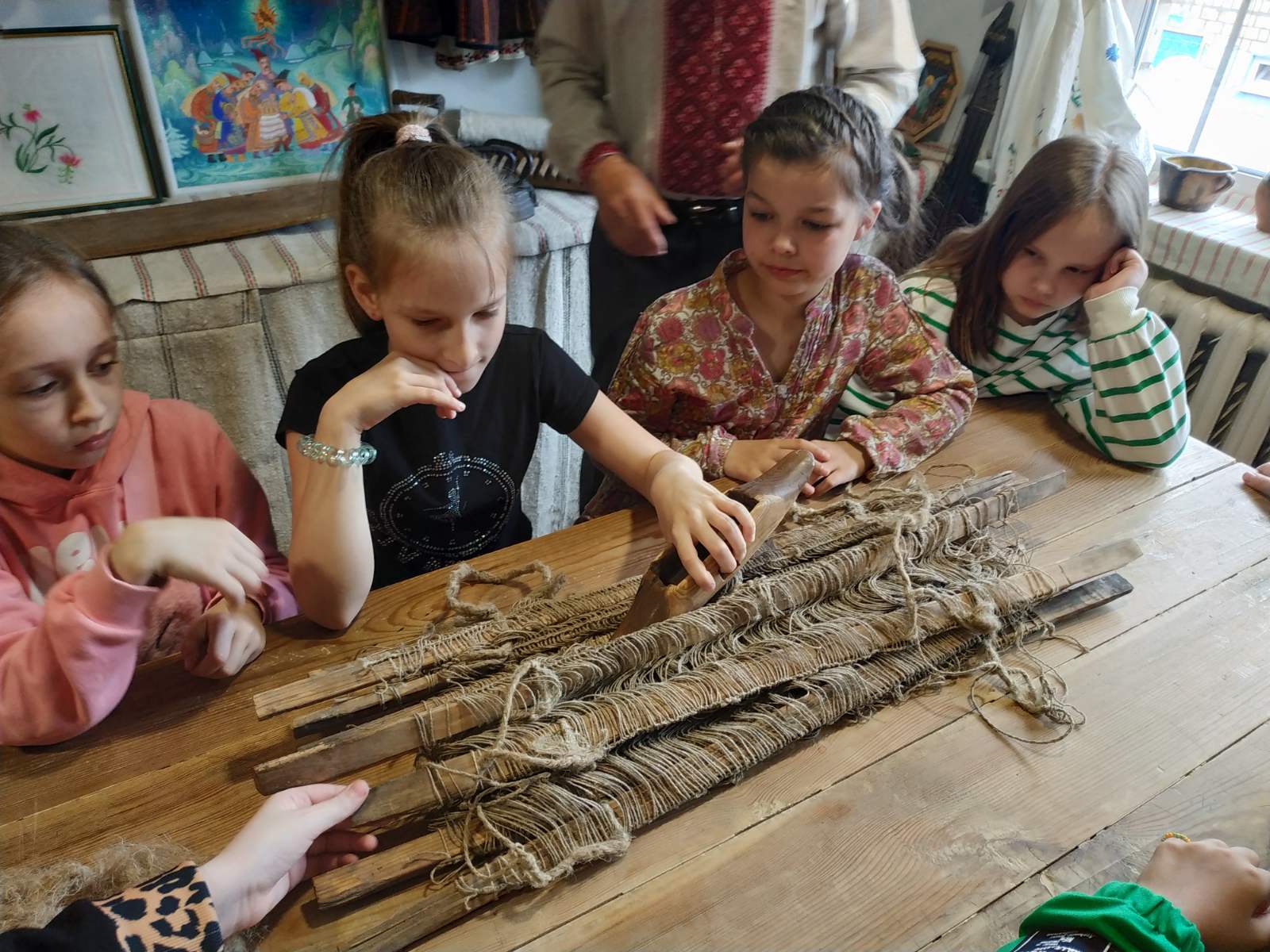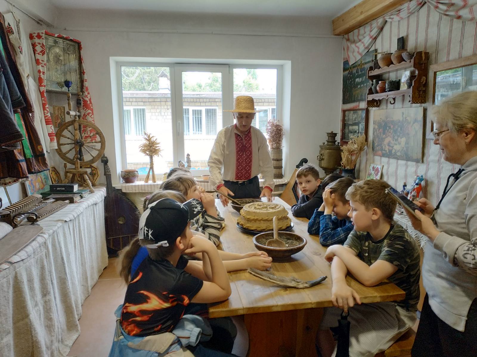 Протягом двох тижнів червня Центр «Десантник» приймав у себе малечу святошинських шкіл. В історико-краєзнавчому музеї закладу дітей чекали автентичні національні цікавинки – фрагмент ткацького верстату, на якому відбувався старовинний процес виготовлення та прасування тканини починаючи з прялки. Маленькі гості з задоволенням долучилися до цього дійства під супроводження українських народних пісень, що лунали з патефону випуску 30-х років 20-го століття.